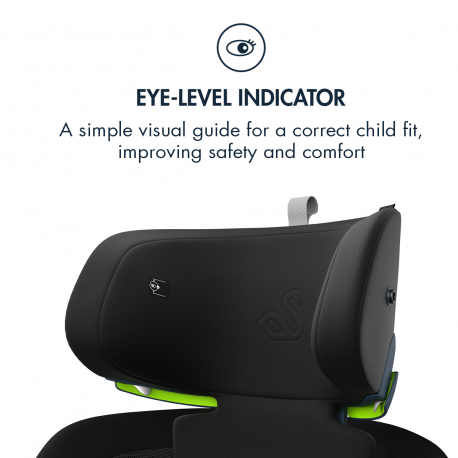 - Ukazatel úrovně očí - tento jednoduchý vizuální průvodce pomáhá správně nastavit opěrku hlavy pro bezpečnou a pohodlnou jízdu