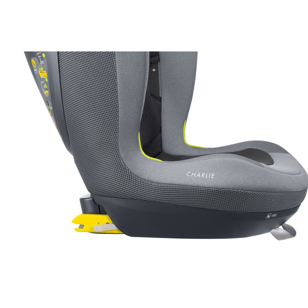 Charlie je certifikován podle předpisu R129 i-Size. Sedačku lze používat pro děti do výšky 150 cm a hmotnosti 55 kg.