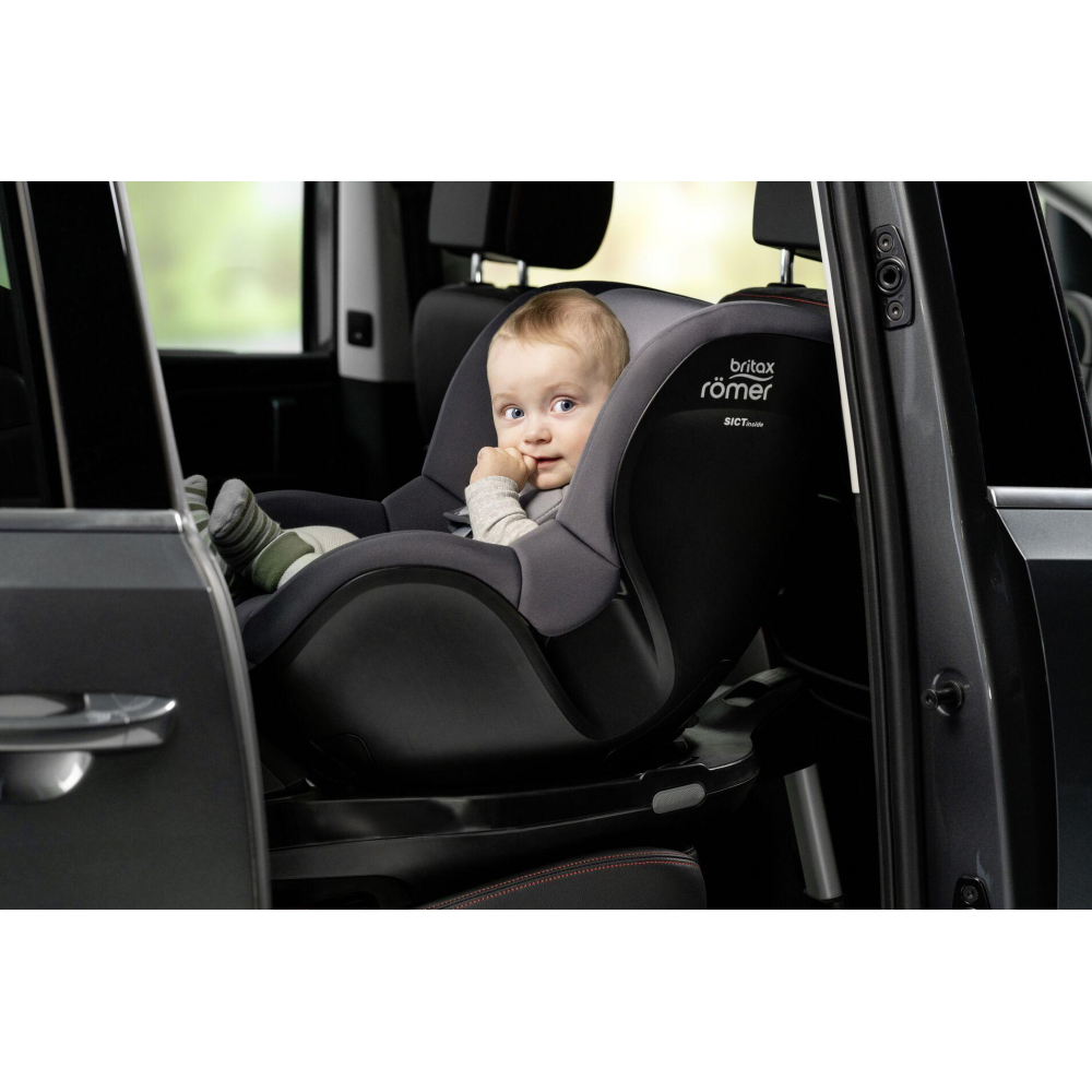Díky základně lze otočit autosedačku směrem k otevřeným dveřím auta, takže můžete dítě snadno posadit a připoutat. Přestože je doporučeno, aby dítě bylo co nejdéle otočené proti směru jízdy, můžete základnu svého DUALFIX 3 i-Size otočit pro cestování po směru jízdy o 180 stupňů, jakmile dítě přesáhne 15 měsíců a 76 cm.