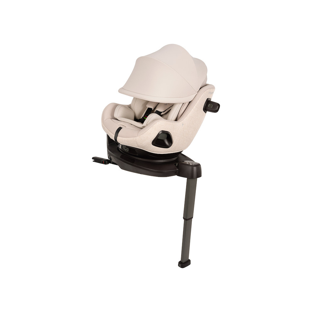Nová varianta luxusní otočné autosedačky PRUU, která nabízí síťované prodyšné materiály, kompaktnější rozměry a stříšku pro ještě lepší komfort na cestách při zachování špičkové úrovně bezpečí.