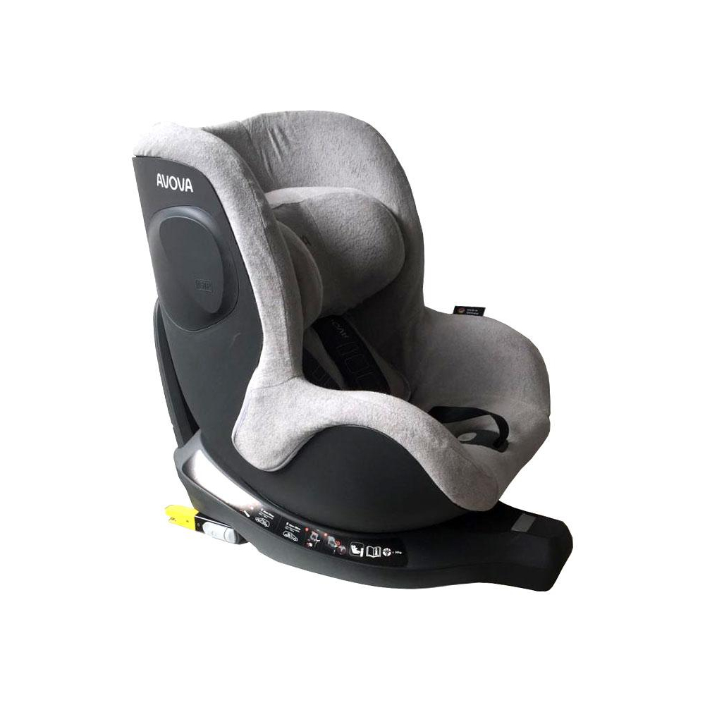 Tvarově přesně se přizpůsobuje tvaru autosedačky Avova Sperber-Fix včetně nastavování opěrky hlavičky.