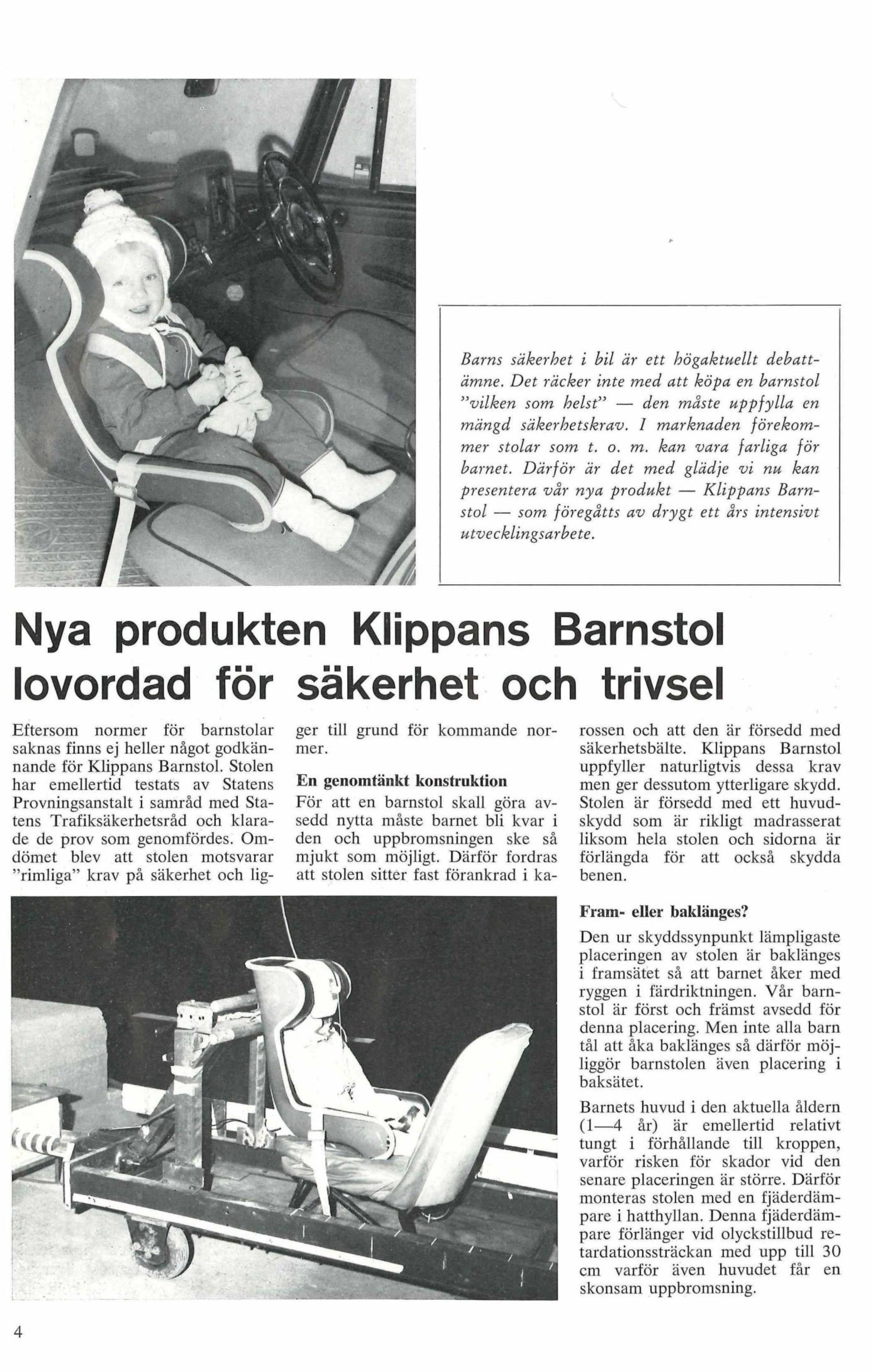 A to již od roku 1967. Podívejte se na archivní dokument z roku 1967 - již tehdy se vyráběli protisměrné autosedačky Klippan. Bezpečí malých pasažérů je v Klippanu na prvním místě a motto Klippanu: "The safety of your family is our mission", to jen potvrzuje.