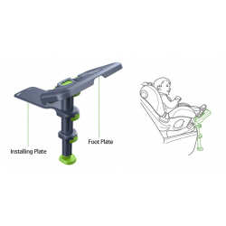 Uchycení podnožky se provádí pomocí pásků na konci zásuvného plátu. U sedaček se systémem ISOFIX je to připevněním karabin k držáku ISOFIX. Pokud tento systém v autě nemáte, nezoufejte, podnožku můžete připevnit také provlečením pásků mezi sedákem a opěradlem. Za sedadly podnožku zajistíte plastovými úchyty.