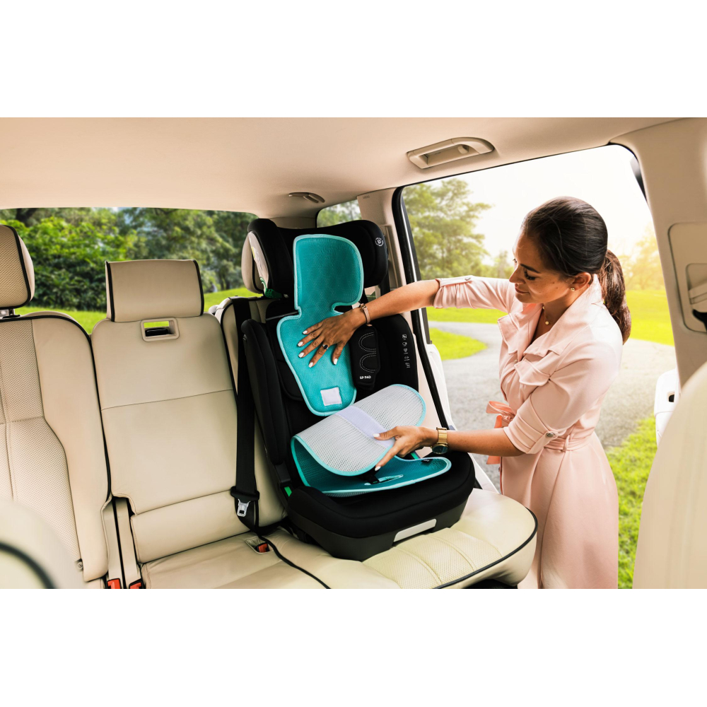 Proto nevznikla jedna univerzální podložka, ale tři odlišné varianty. Každá se dokáže perfektně přizpůsobit kategorii autosedaček, pro kterou je určená. Díky tomu mají rodiče jistotu, že podložka nezabrání správnému vedení pásů.